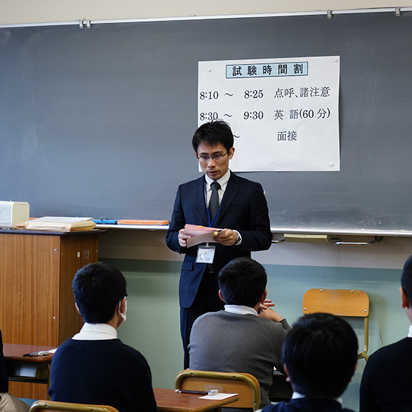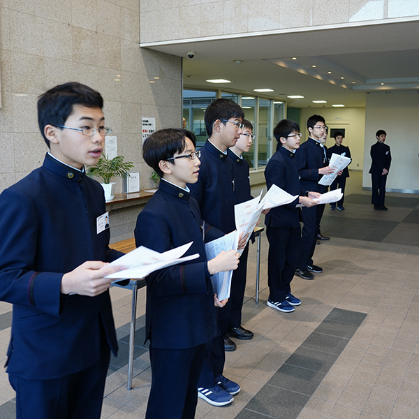 受付では、中学2年生が「おはようございます!」と、受験生を元気づけるように声かけする様子がみられました。