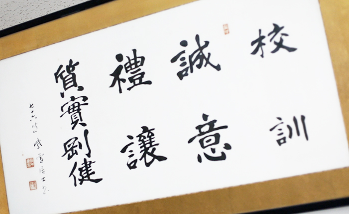 攻玉社の校訓である「誠意・礼譲・質実剛健」。