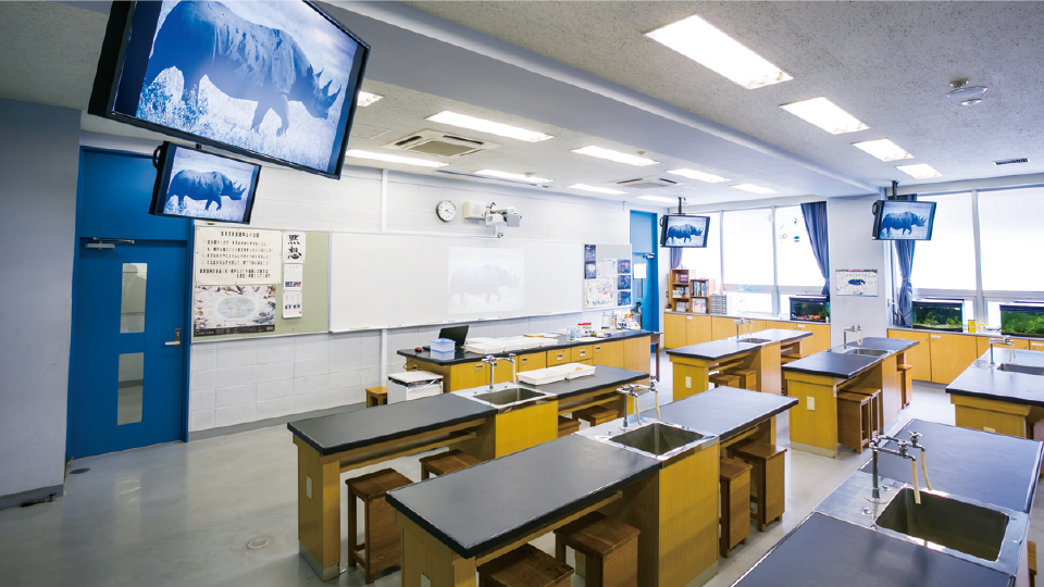 ほかにも最大で1500名が収容できる体育館兼講堂や最新のコンピュータを設置した情報科教室など、数多くの施設をラインアップしています。