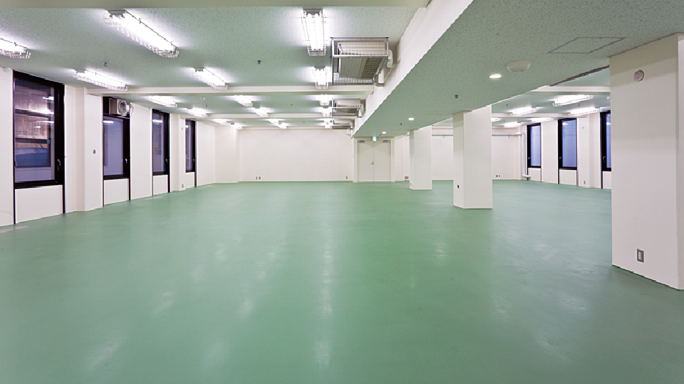 1号館は地上7階・地下2階のスケールを誇る建物で、吹き抜け回廊式の構造が開放感を生み出しています。