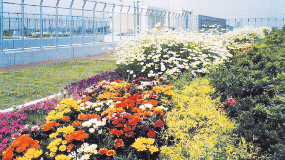 屋上には潤いある草花などを配した庭園が整備されており、教材としても活用されます。